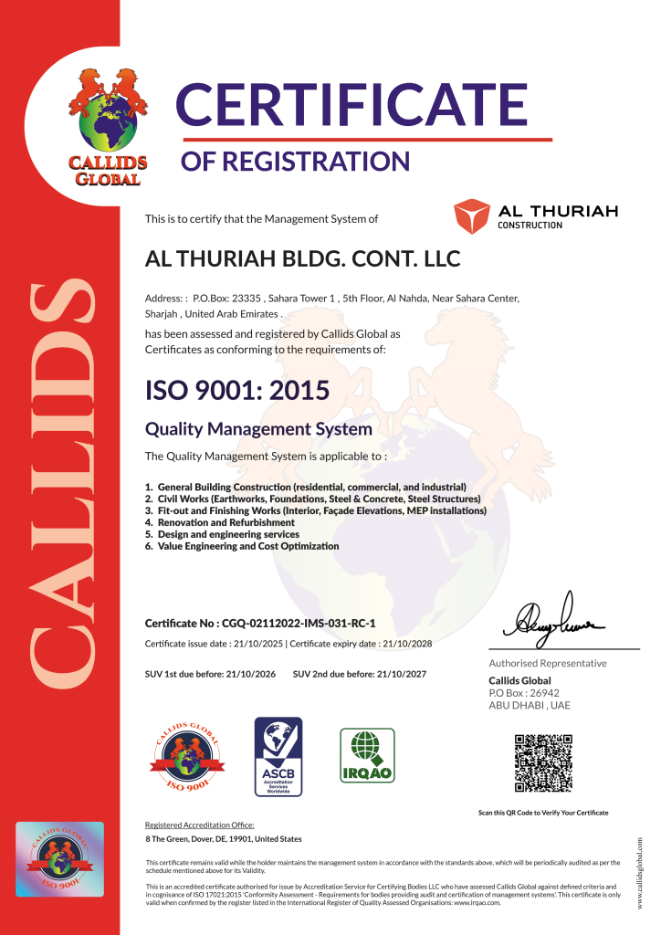 From concept to completion, trust Al Thuriah for construction solutions that shape skylines and exceed expectations across Sharjah and the UAE