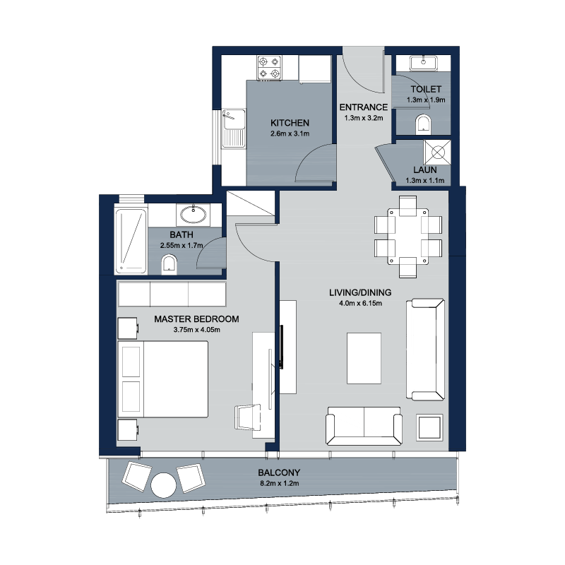 La Plage Tower has 45 floors in total, with 350 residential apartments ranging from  1, 2 and 3 bedrooms plus duplex apartments. Some of these units are built with large terraces. It also holds 2 commercial shops and 17 office spaces. Tower amenities include spacious parking slots, swimming pool for both kids and adults, separate gym for gents and ladies furnished with new and modern equipment. The tower is equipped with 24/7 security staff to monitor safety of the premises and its residents.
