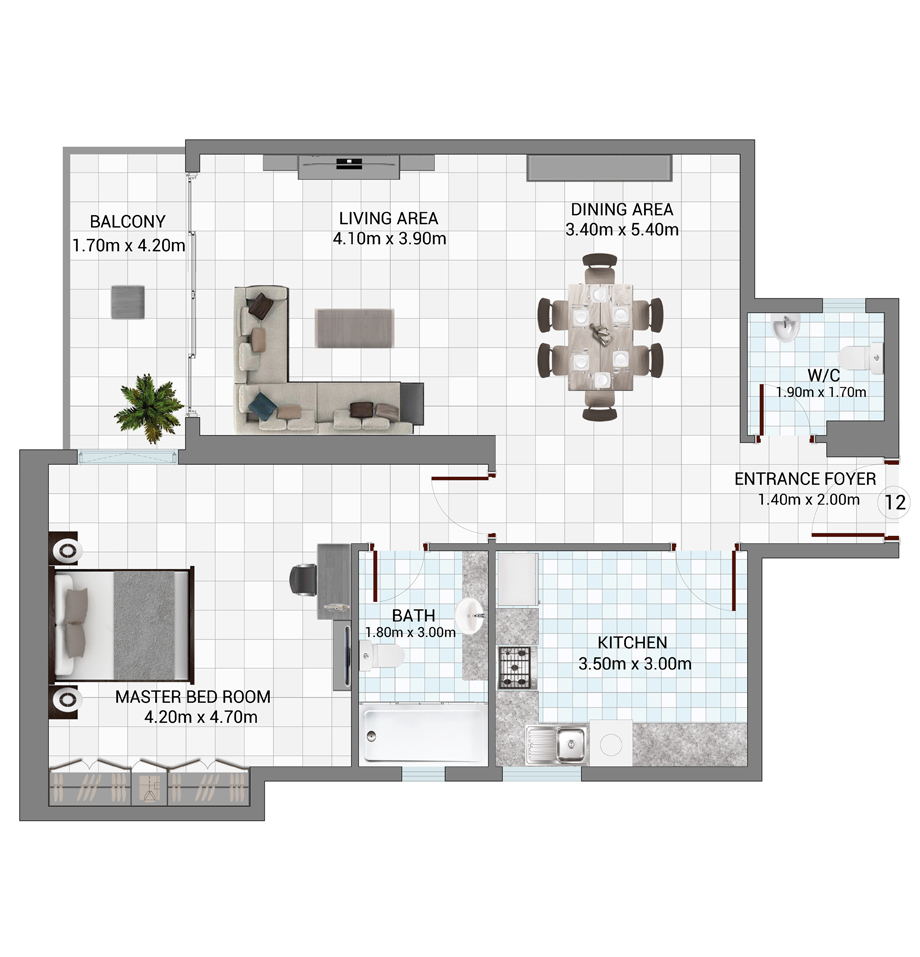 The tower has a total of 22 floors, out of which 18 are residential floors. It offers a mix of 360 units with 1BR, 2BR and 3BR configurations along with 8 commercial shops and 2 office spaces.
