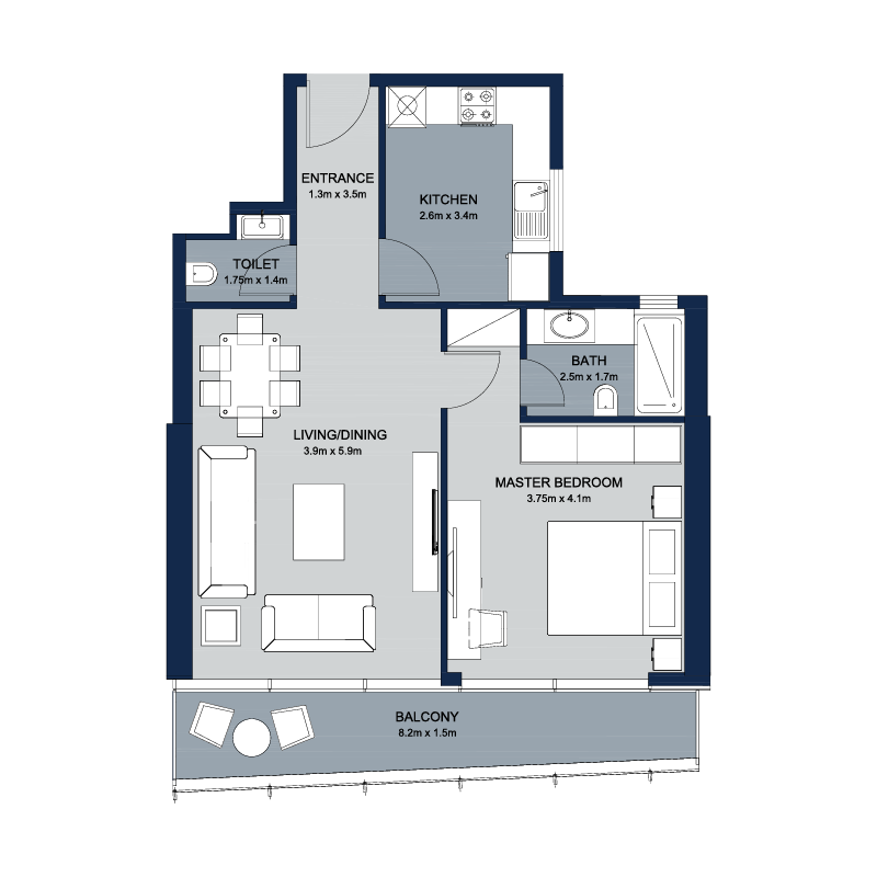 La Plage Tower has 45 floors in total, with 350 residential apartments ranging from  1, 2 and 3 bedrooms plus duplex apartments. Some of these units are built with large terraces. It also holds 2 commercial shops and 17 office spaces. Tower amenities include spacious parking slots, swimming pool for both kids and adults, separate gym for gents and ladies furnished with new and modern equipment. The tower is equipped with 24/7 security staff to monitor safety of the premises and its residents.