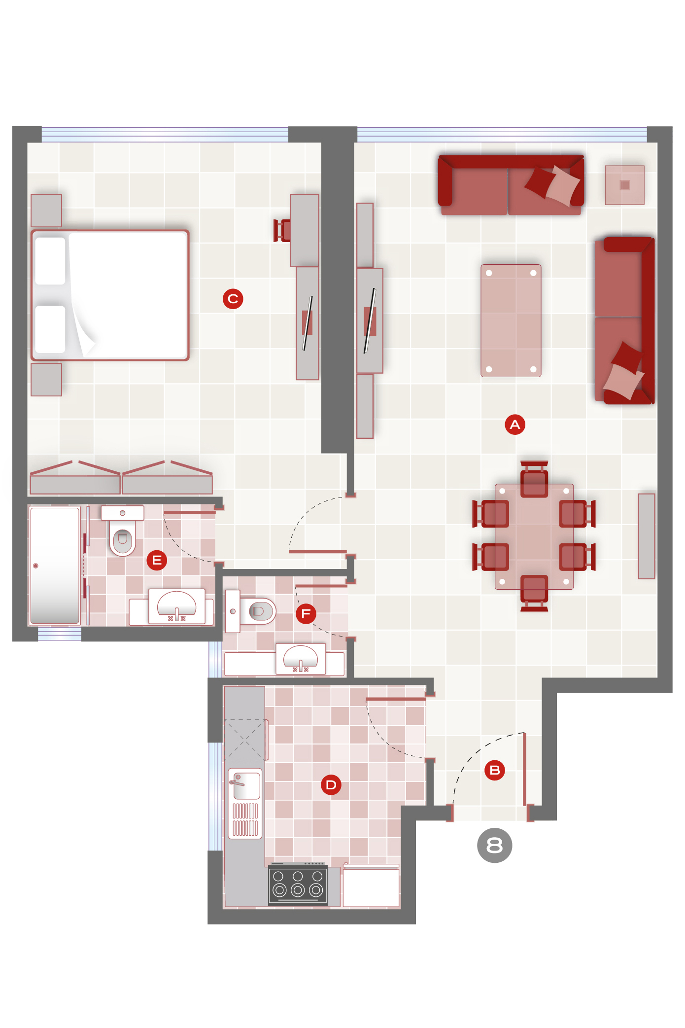 The 1BR Type A-8 floor plan at Sahara Tower 6 offers a practical 1,050 sq.ft. one-bedroom apartment in Al Nahda, Sharjah. A bright open-plan living and dining area sits at the center of the home, with an enclosed kitchen near the entrance and a guest washroom for visitors. The bedroom is set on the quieter side with built-in wardrobes and direct access to the main bathroom, giving extra privacy. This layout is ideal for singles or couples who want a comfortable, easy-to-furnish home with space to host and relax.