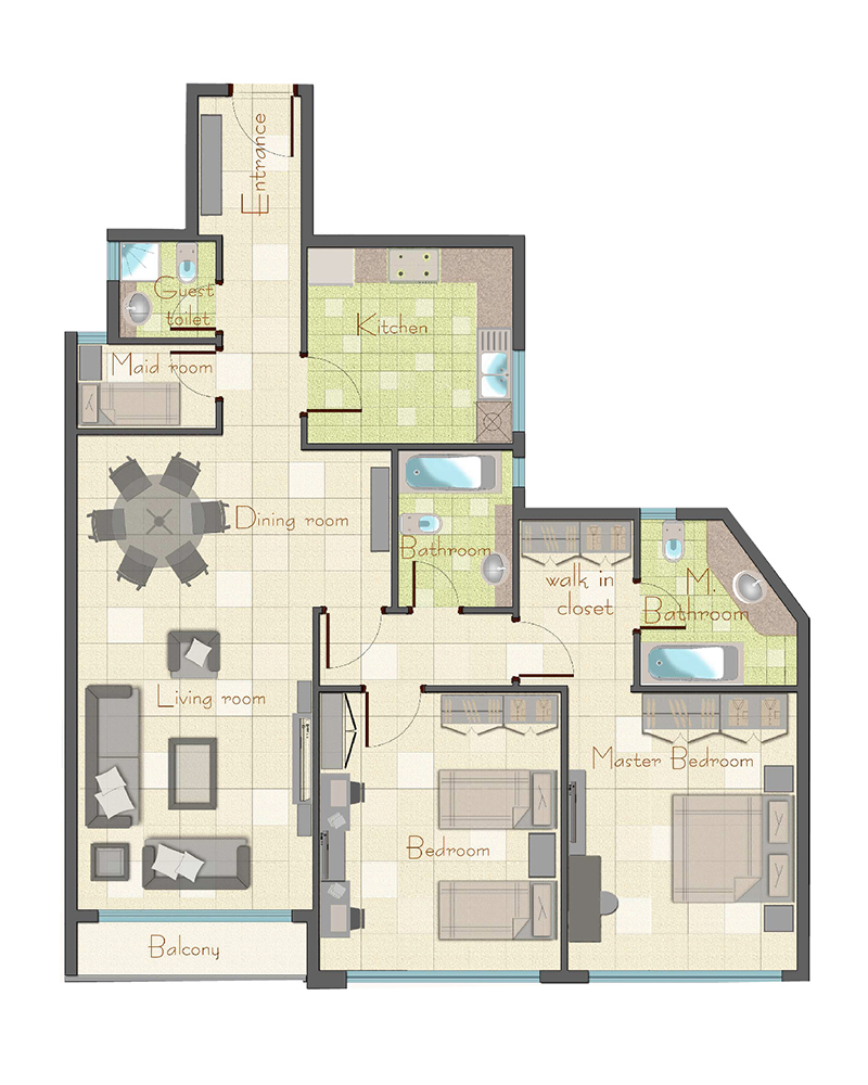 The tower comprises 5 parking floors and 15 residential floors. It has a total of 150 stylish apartments offered in 1, 2 and 3-bedroom configurations with individual areas ranging from 850 to 1,940 square feet. The tower is designed with a modern lobby, a fully equipped gymnasium and swimming pool.