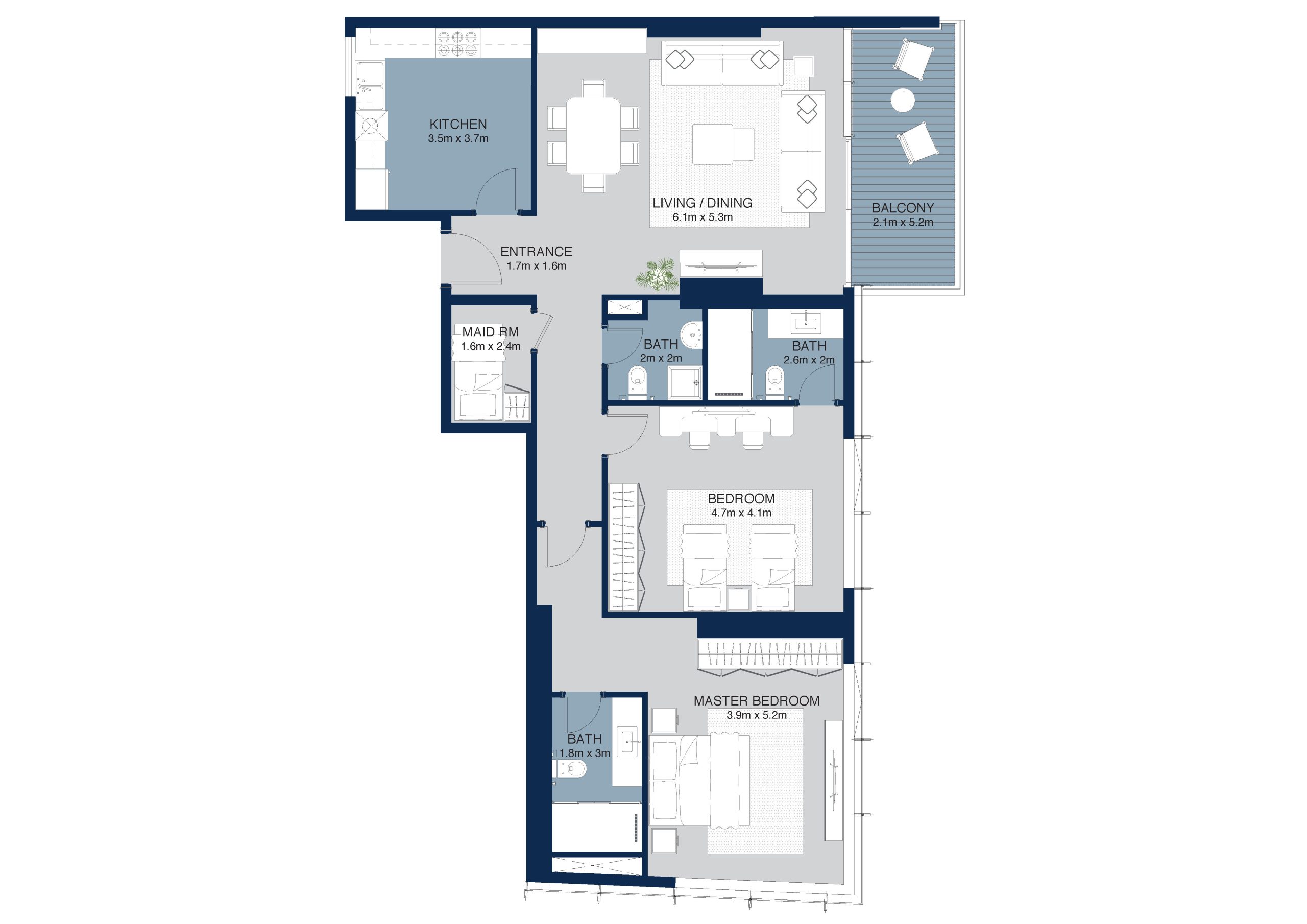 This 2 bedroom unit from 33rd – 45th floors offer spacious balcony, creating the perfect extension of your indoor space, ideal for al fresco dining, morning coffee, or sunset views over Al Mamzar.