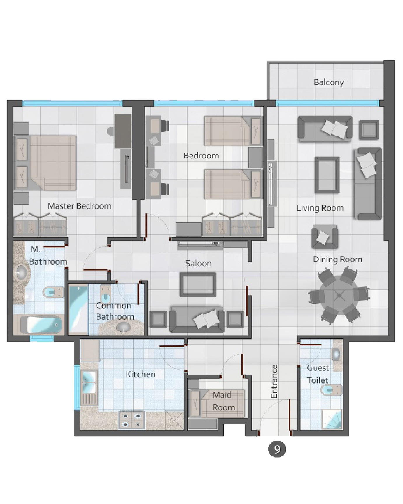 Future Tower 3 is another high-rise residential tower built on the bustling yet conservative neighborhood of Al Khan, Sharjah. The area is home to many retail establishments as well as the headquarters of renowned commercial institutions like Petrofac and Bank of Sharjah. The Al Ikhlas mosque, Viva supermarket, hotels and restaurants are also nearby.