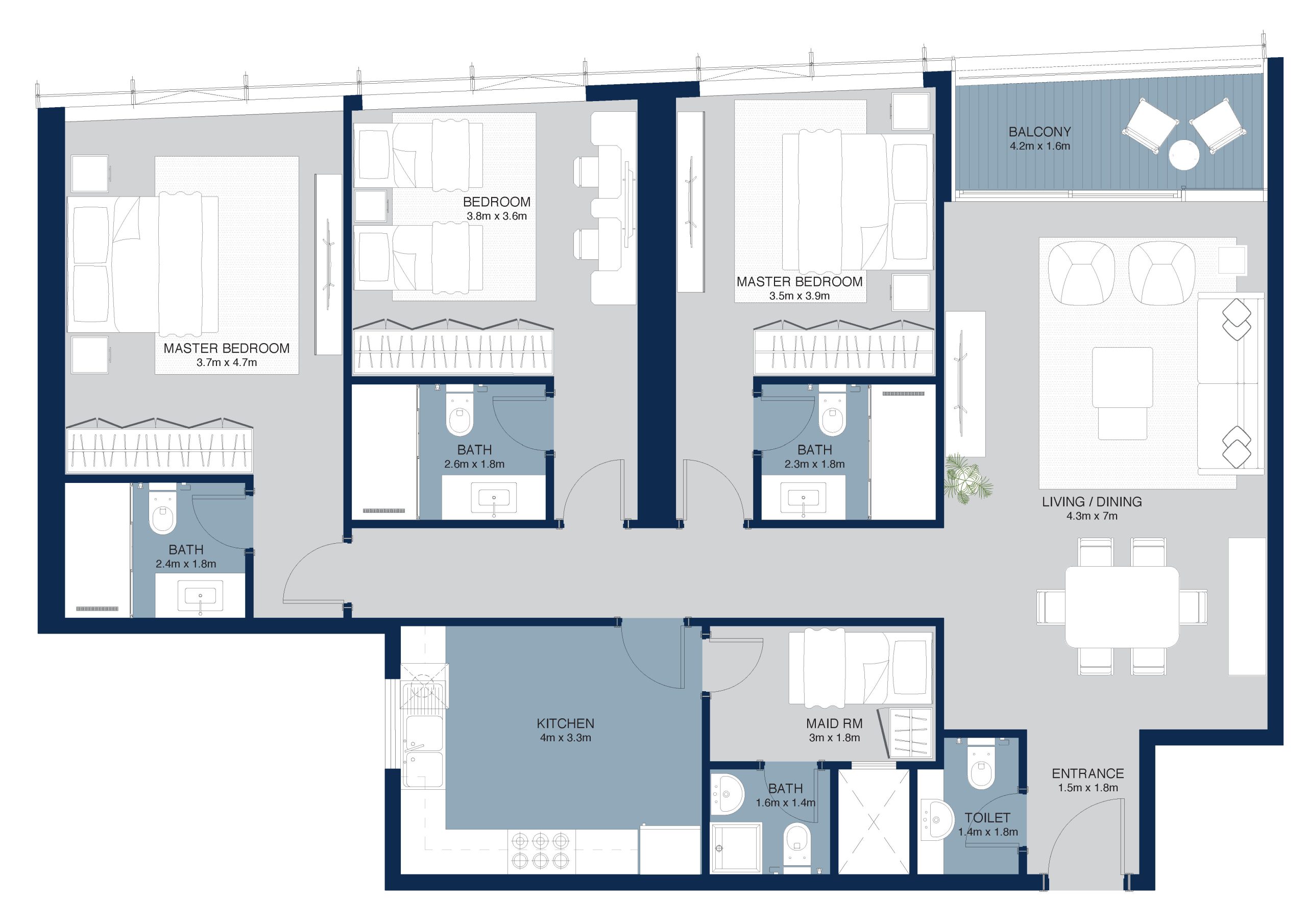 This stylish 3 bedroom apartment from 33rd to 45th floor offers stunning view of the city skyline. Its large windows open up the space, making it feel bright and expansive, ideal for those who appreciate both comfort and a beautiful outlook.