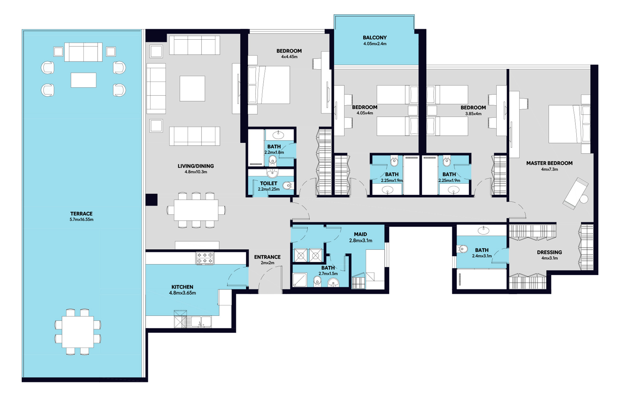 This 4-bedroom penthouse for sale in S1 Tower, Al Mamzar, Sharjah offers an expansive floor plan with terrace and balcony, perfect for families and luxury lifestyle seekers. Featuring a spacious living and dining area, a large master bedroom with dressing room, maid’s room with attached bath and multiple en-suite bedrooms, this penthouse blends modern waterfront living with the best of Sharjah real estate.
